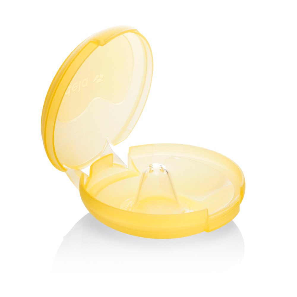 - Dos pezoneras para lactancia Contact™ con un práctico escuche para guardarlas y transportarlas.